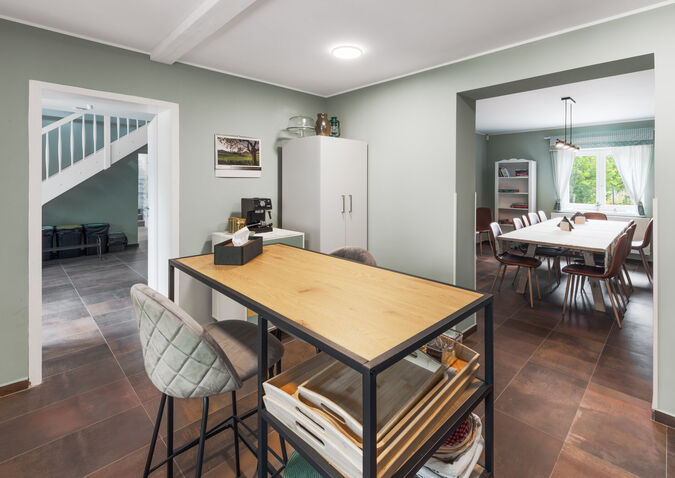 Podkroví: Velkorysý prostor nabízí nejen nádherný výhled do okolí, ale i kulečník, fotbálek, TV, hračky...prostě dokonalá herna pro děti i dospělé. V případě, že děti nebudou chtít toto úžasné místo opustit, mohou zde přespat na 2 rozkládacích gaučích (celkem 4 lůžka).