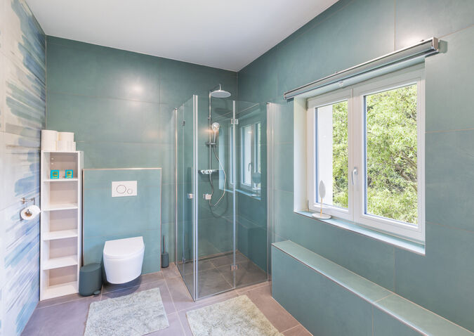 Vytápění: Tepelné čerpadlo a krbová kamna, ve wellness a v koupelně podlahové vytápění.